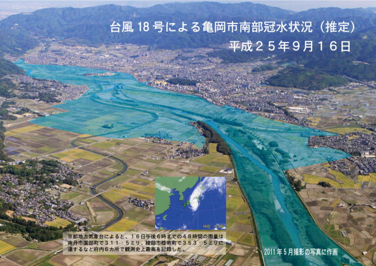 以前撮影した写真に、調査中の冠水状況を合成してみると