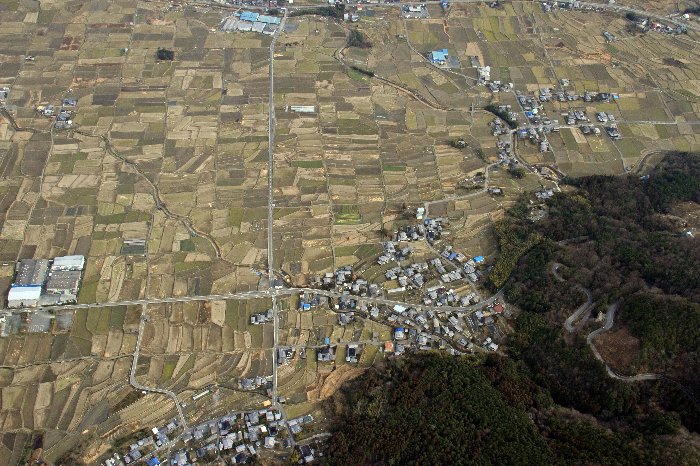 京都市右京区嵯峨樒原の鎧田の空撮写真