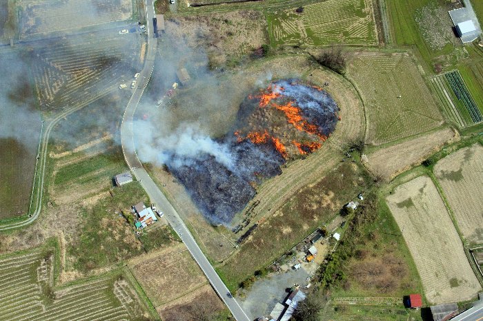 かなりの農地およびJR沿線の住宅が冠水している様子が分かります。