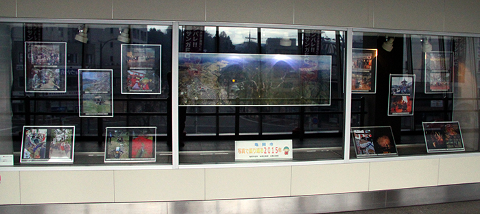 JR亀岡駅の2階の展示コーナーにて亀岡市広報課による