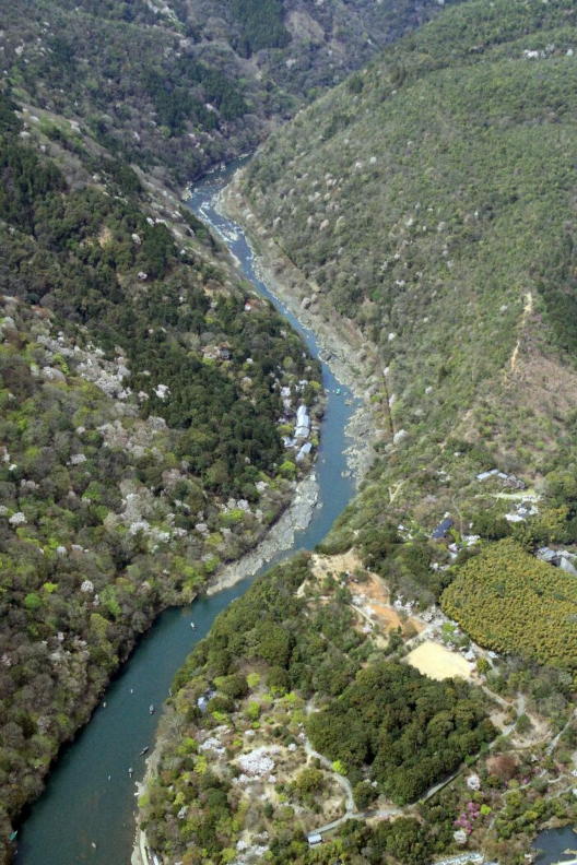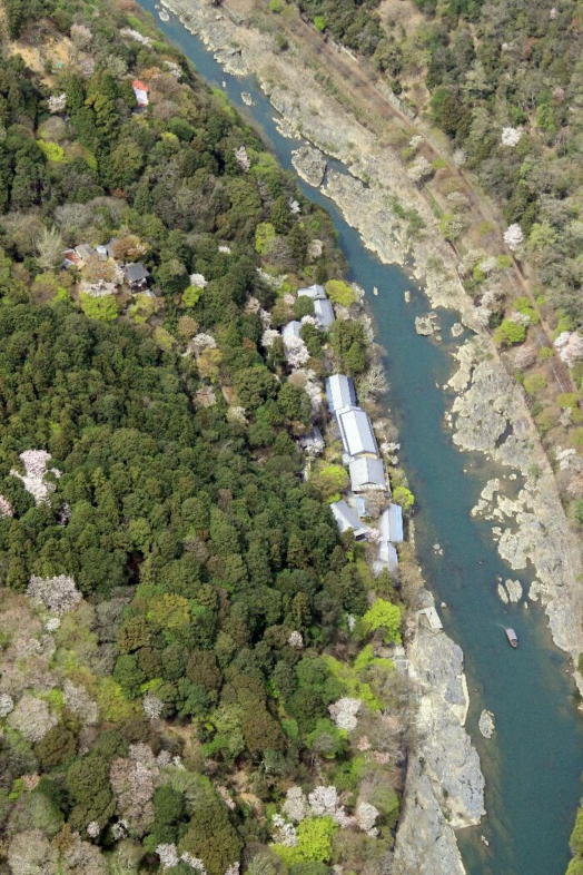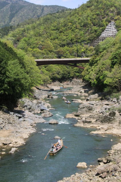 左から 保津峡入り口・紅葉の保津峡・春の嵐山