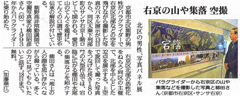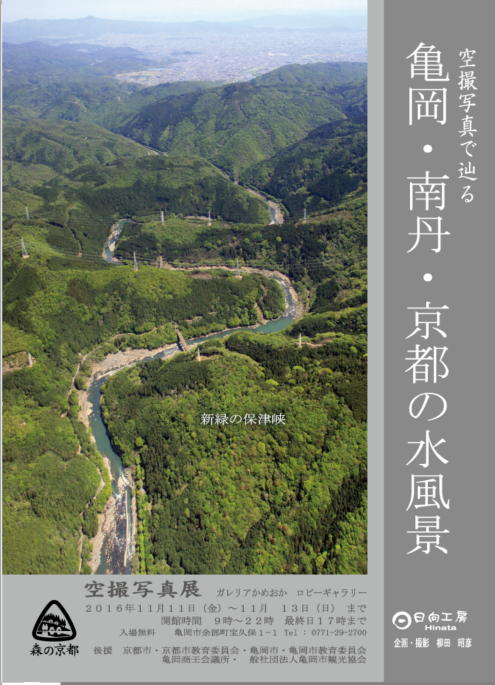私の撮影した亀岡盆地の霧と盆地の様子のわかる写真が展示されています。