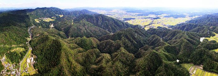 神吉上空から愛宕山方面を見る。