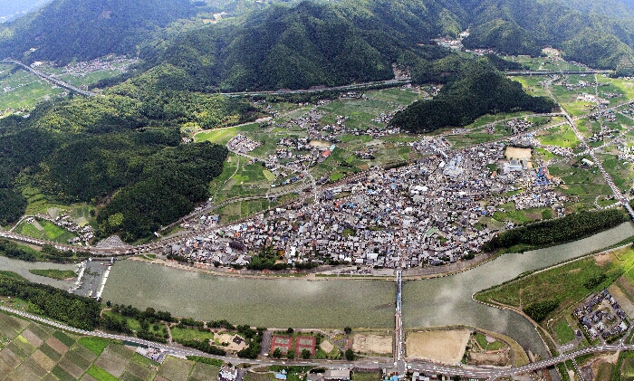 八木町の中心部の街道筋の街並みが歴史を物語る一方で、どんどんと変化する八木の街。最近京都縦貫道八木東インターへの接続道路が完成し477号線バイパスとなった。