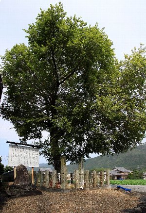 篠町にある「足利尊氏旗揚げの地」篠村八幡宮にある「旗立て楊」。