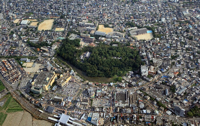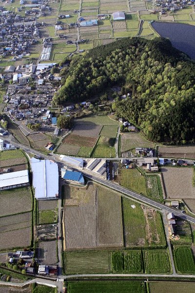 画面中央左に坊主塚古墳が見える。