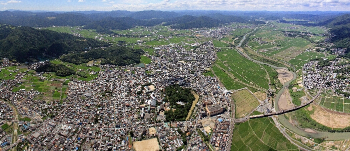 亀山城下を東から俯瞰する |