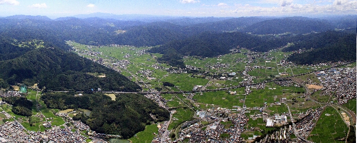 西京都パラグライダー練習場上空から園部〜八木までの街道の様子。
