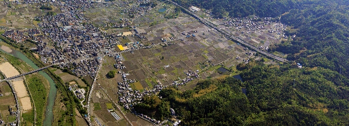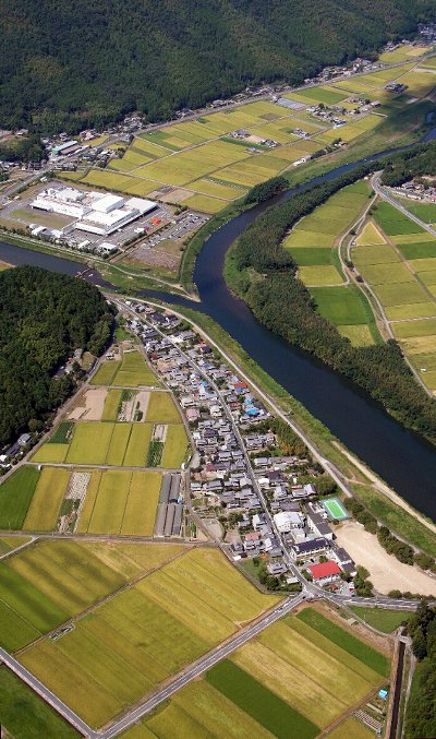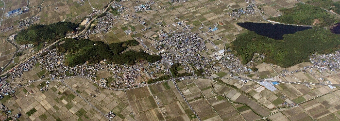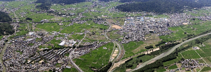 丹波の国府があったのではとされる、千代川町拝田付近の空撮。