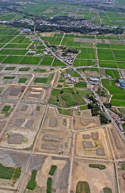画面上左部分、馬路町南部で圃場整備事業の波が進んで来ている。