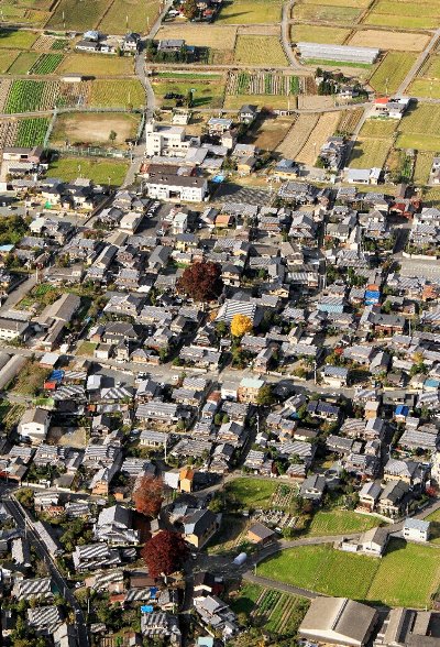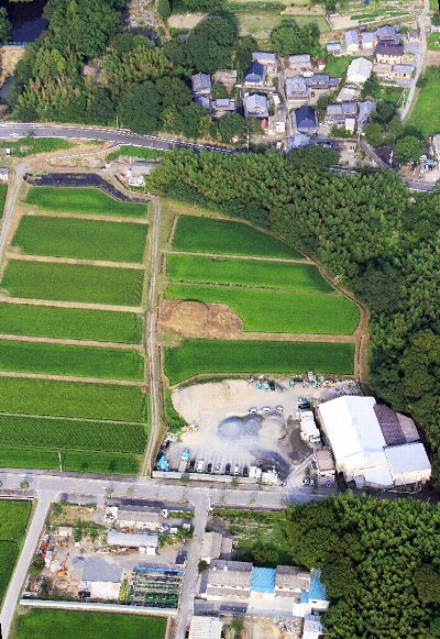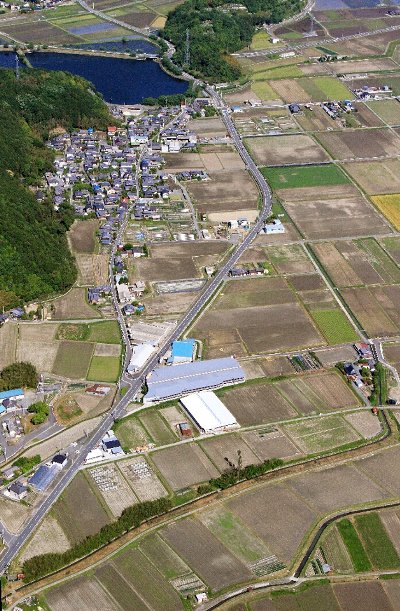 丹波の国府があったのではとされる、千代川町東斉ノ本付近の空撮。
