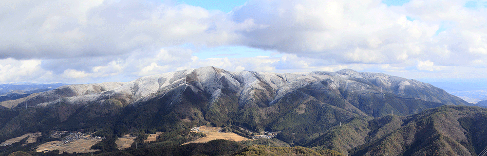 立春を過ぎて寒波が到来。愛宕山や地蔵山も少し雪化粧。遠くの比良連峰は雪景色となりました。