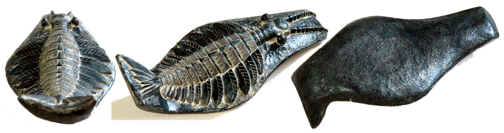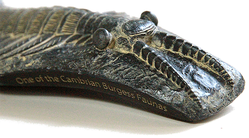 右側下部には「カンブリア紀バージェス動物群の一つ」と彫り込みました。