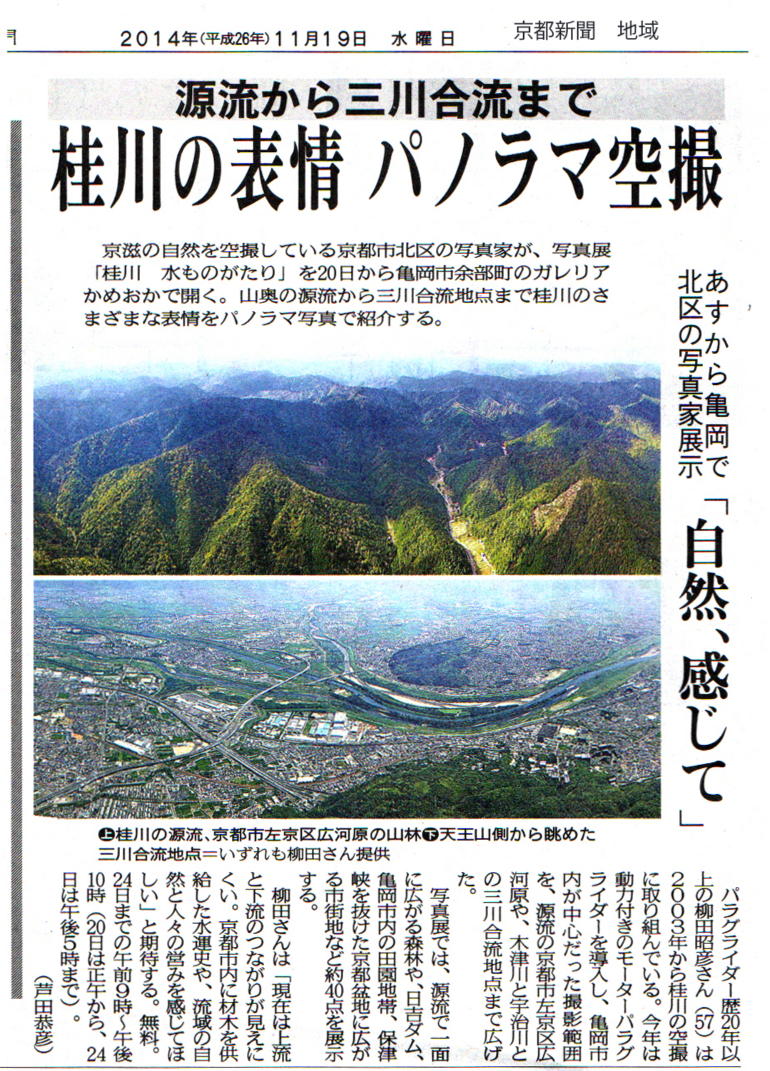 私の撮影した亀岡盆地の霧と盆地の様子のわかる写真が展示されています。