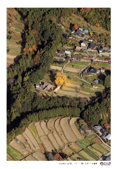 春寒の宕陰 神吉上空より愛宕山方面を望む。背景は京都市内