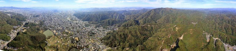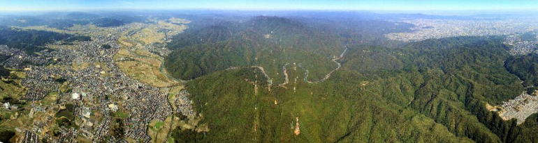 良く晴れた秋の空を、東側から見る愛宕山の風景を押さえるべく、嵯峨上空までフライトする。