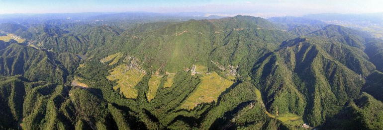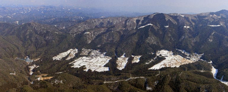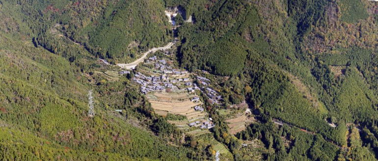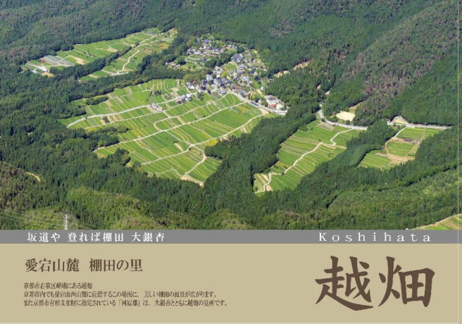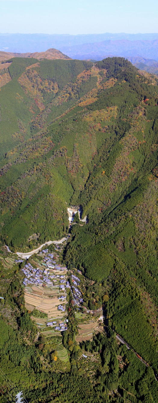 北西方向から越畑を眺める。日本の里100選に選ばれている土地である。