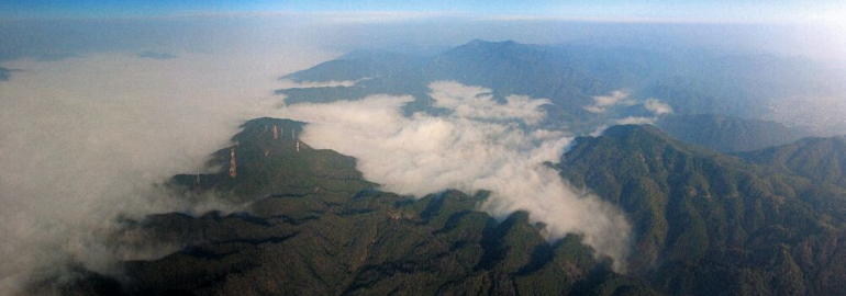 亀岡名物、冬の丹波霧は保津峡入り口から峡谷沿いになだれ込み京都嵐山へ至る。愛宕山西側の水尾の谷にも霧が入り込んでいる様子が分かる。